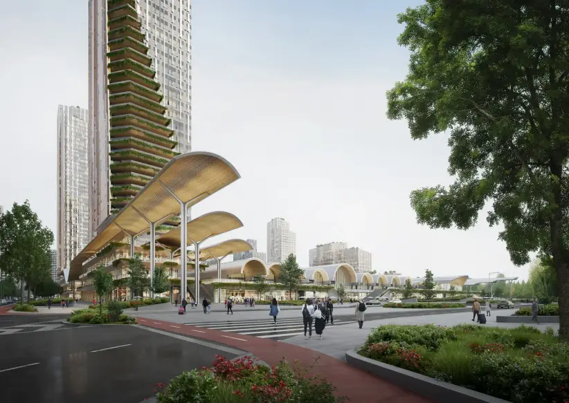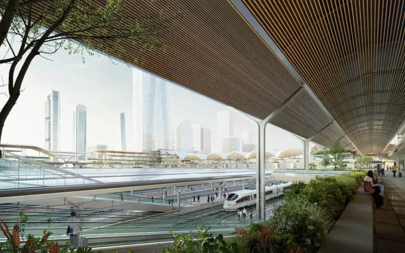 El equipo de diseño consideró necesario preservar los techos abovedados originales de la estación, como un elemento distintivo y característico de su pasado y futuro. Además, ha incorporado una serie de terrazas escalonadas y balcones que fusionan el edificio con los parques circundantes. Por eso destacan las impresionantes vistas que ofrece.