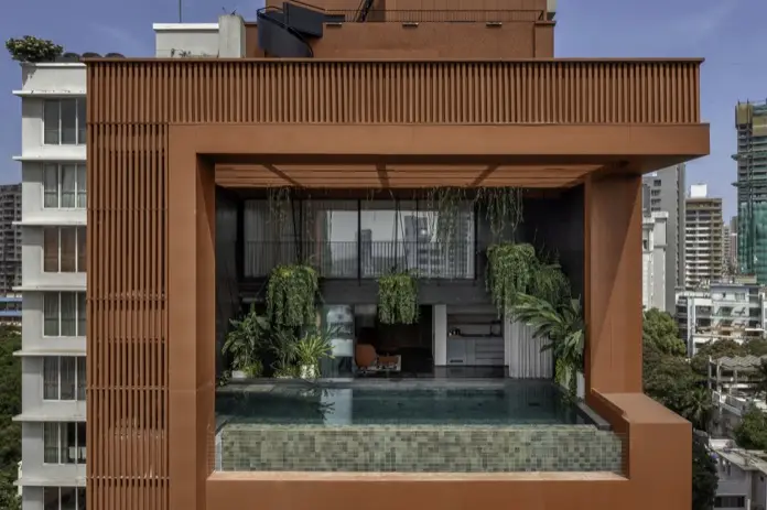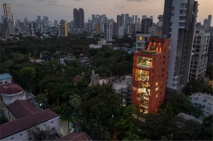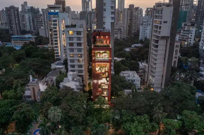 A simple vista, cuesta creer que sea una vivienda unifamiliar, pero así es, y tampoco es la más alta de Bombay. La propuesta arquitectónica explora un enfoque original para adaptar el programa de una vivienda a una vida vertical. Lo hace además aprovechando al máximo el espacio disponible. Esta obra es un ejemplo de sostenibilidad, modernidad, y de integración cuidadosamente planeada con la naturaleza. Como veremos más adelante, hace de cada espacio un respiro en medio de la ciudad.