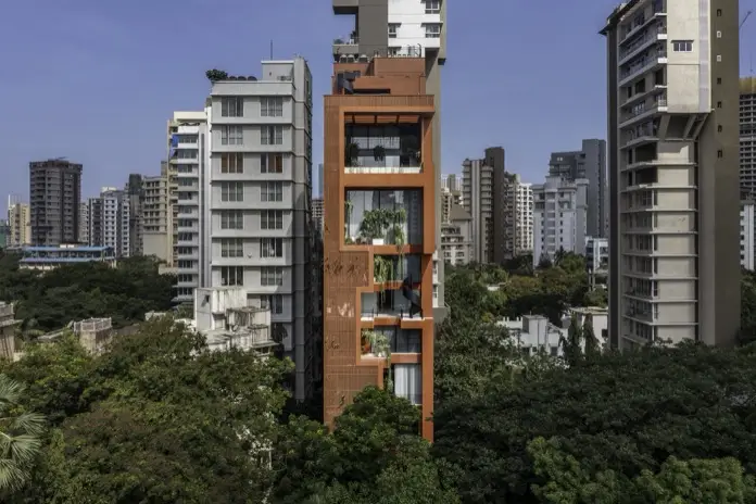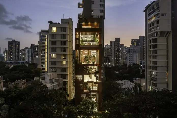 Con una fachada cautivadora, y espacios interiores conectados con la naturaleza, se ha organizado una casa en vertical. Además, es un proyecto que destaca visualmente, creando una nueva forma de habitar en un entorno tan complejo como Bombay.